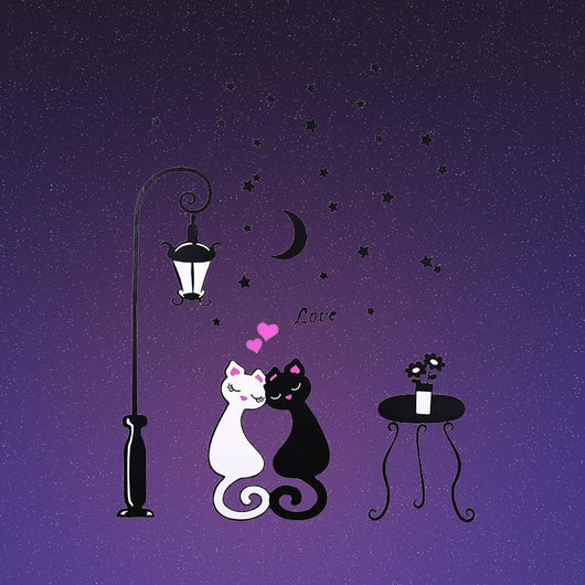 Cute Cartoon Couple Cat Flower Vine 3D Wallpaper